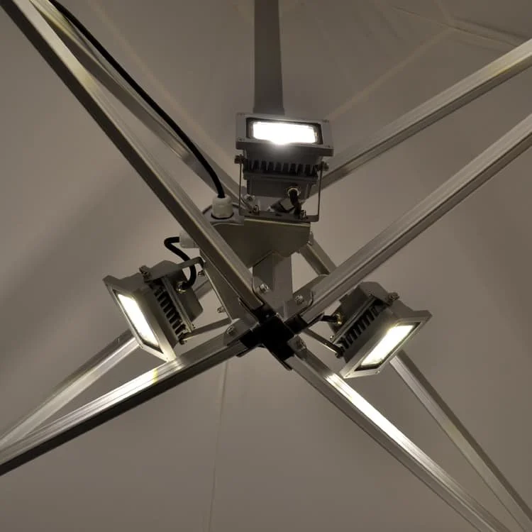 Enhance evening events with our versatile lighting options, complete with an extension cable and complimentary set-up. Pair them with our heaters for the perfect balance of white and yellow light, keeping you warm under your gazebo. Create captivating ambiance effortlessly with our seamless installation and brilliant illumination. Elevate your outdoor experience with our compact and convenient lighting options, leaving a lasting impression on your gatherings. Illuminate your space with brilliance and enjoy the fusion of light and warmth under your gazebo.